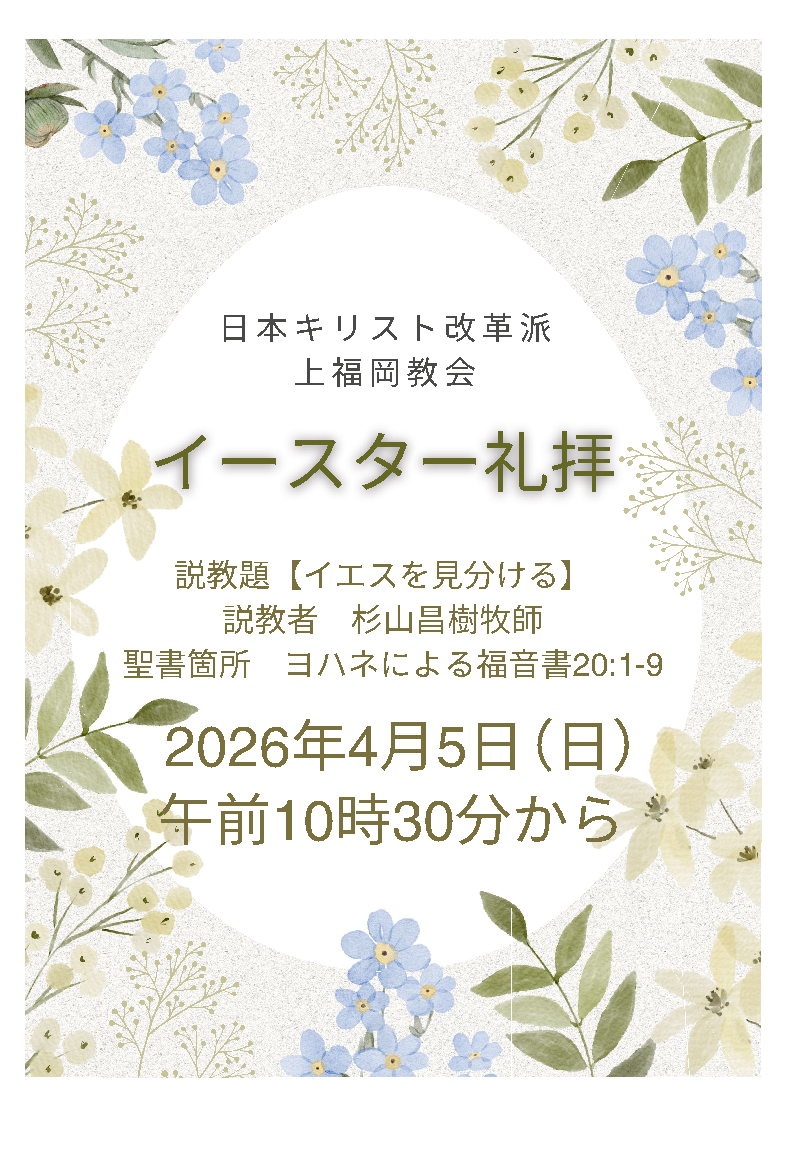 今週は会堂に集まらない礼拝となる為、説教は音声のみでの公開となります。